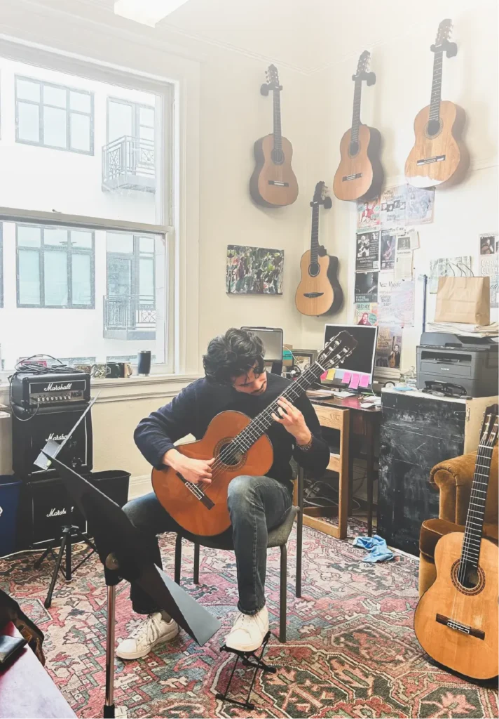 Tuve la fortuna de formarme en la San Francisco Conservatory of Music, primero en su programa Pre-College (2017-2021), donde estudié con el maestro Scott Cmiel, y más tarde en el programa universitario (2022-2024), bajo la guía de David Tanenbaum. Durante esos años, no solo afiné mi técnica y sensibilidad artística, sino que también tuve la oportunidad de participar en recitales, ensambles y clases magistrales con guitarristas de renombre como David Russell y Sergio Assad. Cada una de esas experiencias fue una semilla que fortaleció mi amor por la guitarra y mi deseo de compartirla con los demás.